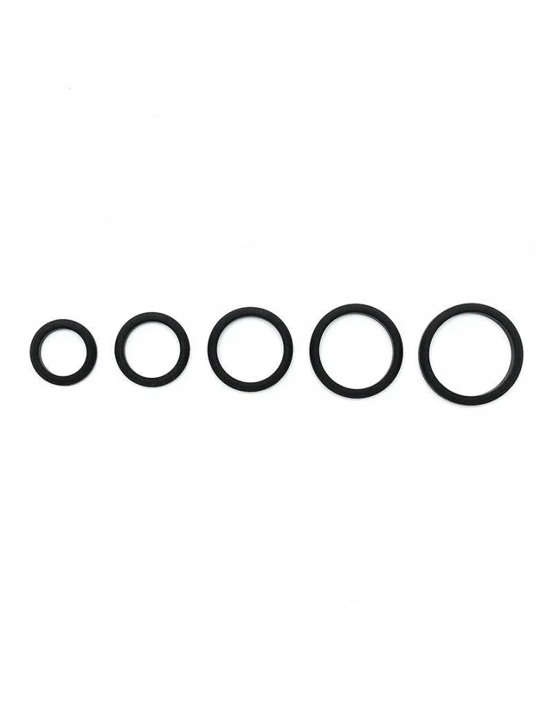 Rimba Bondage Play. Perfect passende, zachte, flexibele, siliconen cockring, verkrijgbaar in 5 verschillende maten van 32 tot 57 mm.