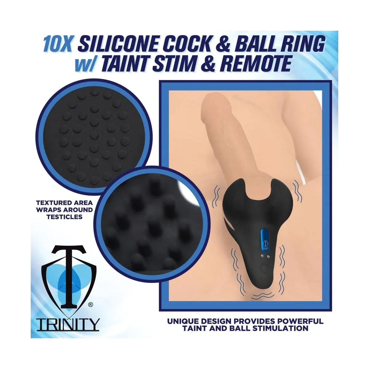 Geef je ballen een aangename roes met deze Siliconen Cockring met Taint Stim! Op afstand bestuurbaar, u kunt de instellingen wijzigen zonder dat u uw geslachtsdelen opnieuw hoeft af te stellen. Geef de afstandsbediening aan een partner zodat ze nog meer plezier kunnen beleven aan het kronkelen en kronkelen van jou! Er zijn 3 snelheden en 7 patronen om uit te kiezen, dus geniet er allemaal van! Het speeltje omhult je ballen en houdt ze voorzichtig op hun plaats terwijl het trilt. De kleine noppen aan de binnenkant van de balcups zorgen voor verleidelijk heerlijke sensaties, terwijl het geurstimulerende kussen krachtige vibraties naar je perineum stuurt! Gemaakt van hoogwaardige, ftalaatvrije siliconen, is het ook zijdezacht en lichaamsveilig om te gebruiken met glijmiddelen op waterbasis. Gebruik het als een vernauwingsring om ook je stijve te versterken!