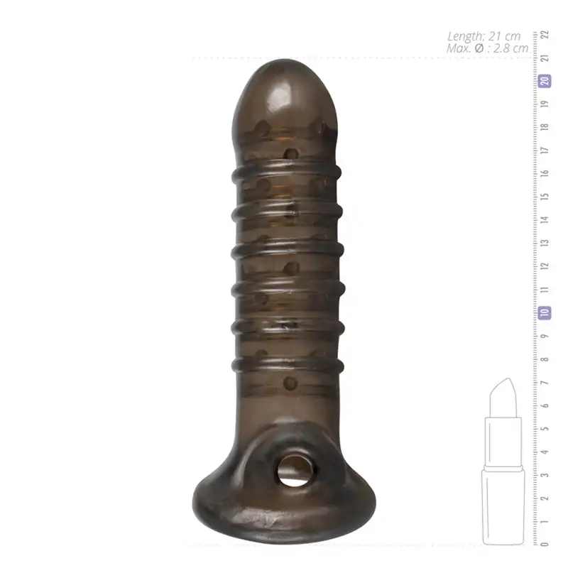 Deze zachte penis sleeve zorgt voor meer genot voor beide partners. De sleeve is gemaakt van zacht, rekbaar materiaal dat perfect aansluit op de penis. Dit zorgt voor optimaal draagcomfort en een iets langere, dikkere penis. De sleeve is voorzien van ribbels op de schacht en nopjes aan de binnenkant. Hierdoor worden beide partners tijdens de penetratie meer gestimuleerd. De sleeve is voorzien van een opening aan de onderkant waardoor hij om de balzak kan worden gedragen. Hierdoor blijft hij zelfs tijdens de meest spannende avonturen goed zitten.